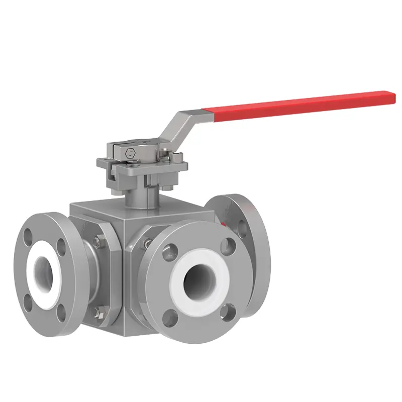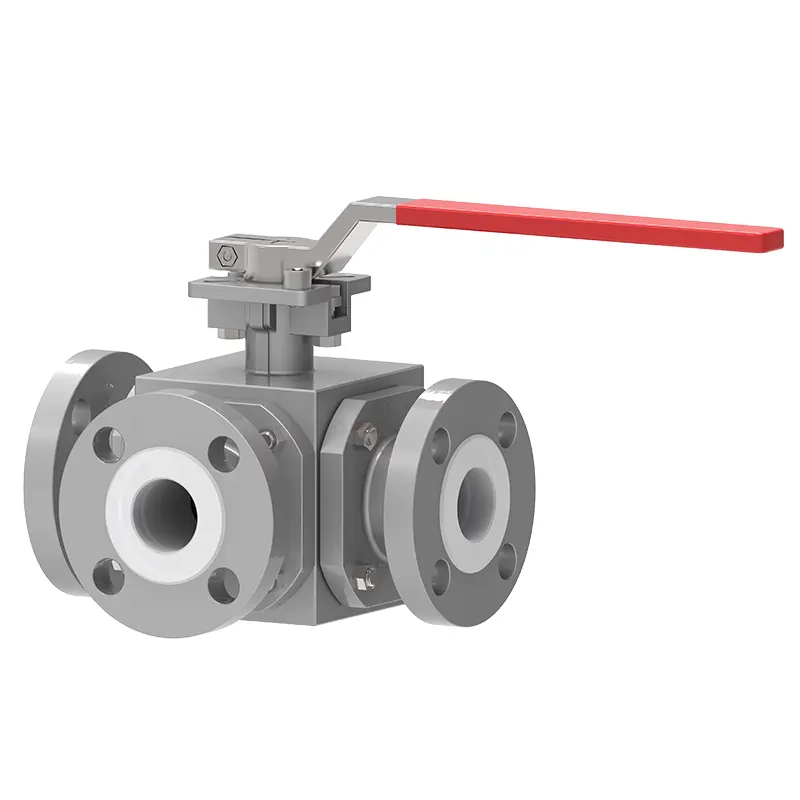 PTFE-foret trevejskugleventil FEP PTFE PFA-foret trevejskugleventil har ekstremt høj kemisk stabilitet og kan bruges i ethvert meget ætsende medie. Boldventilen kan opdeles i to strukturer: to-vejs (to-vejs) og trevejs (trevejs) med lille væskemodstand, hurtig åbning og lukningshastighed og enkel struktur.